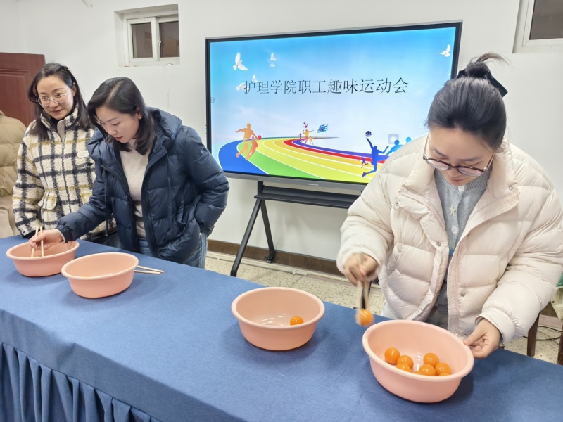 12月9日,护理学院教职工趣味运动会在欢声笑语中拉开帷幕。老师们暂别讲台与办公桌,共享运动之乐。本届运动会设有一“投”定音、“筷”乐传珠等趣味项目。赛场上,老师们全情投入,互相配合,场面既紧张又充满欢笑。加油声、喝彩声此起彼伏,展现了我院教职工朝气蓬勃、团结进取的精神风貌。
